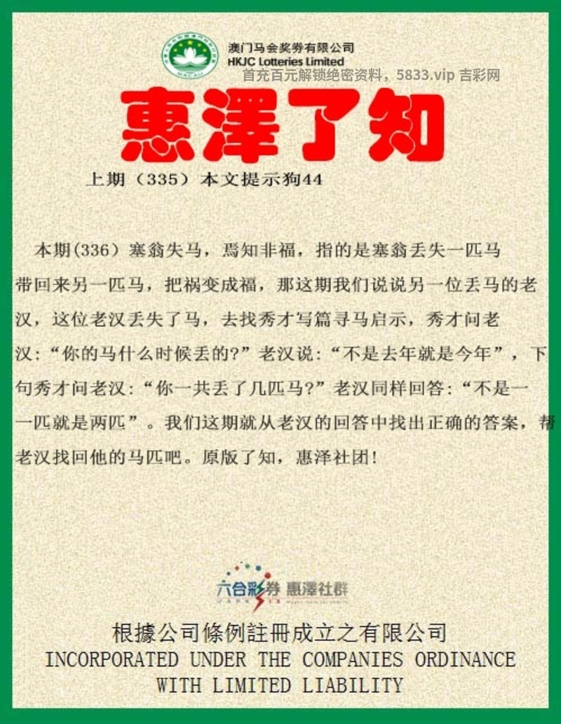 | 335期:【白肖】主【牛.猪.狗】开:狗44中 主六码:【05.29.07.43.20.32】 |